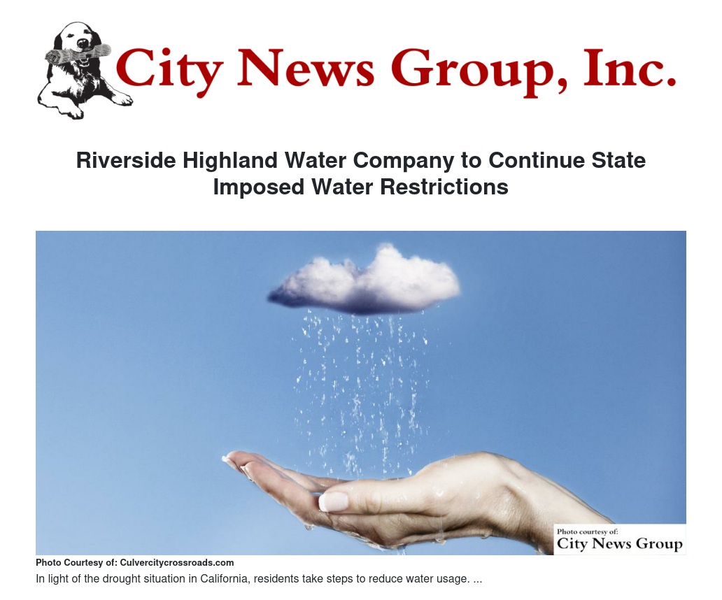 Riverside Highland Water Company to Continue State Imposed Water Restrictions