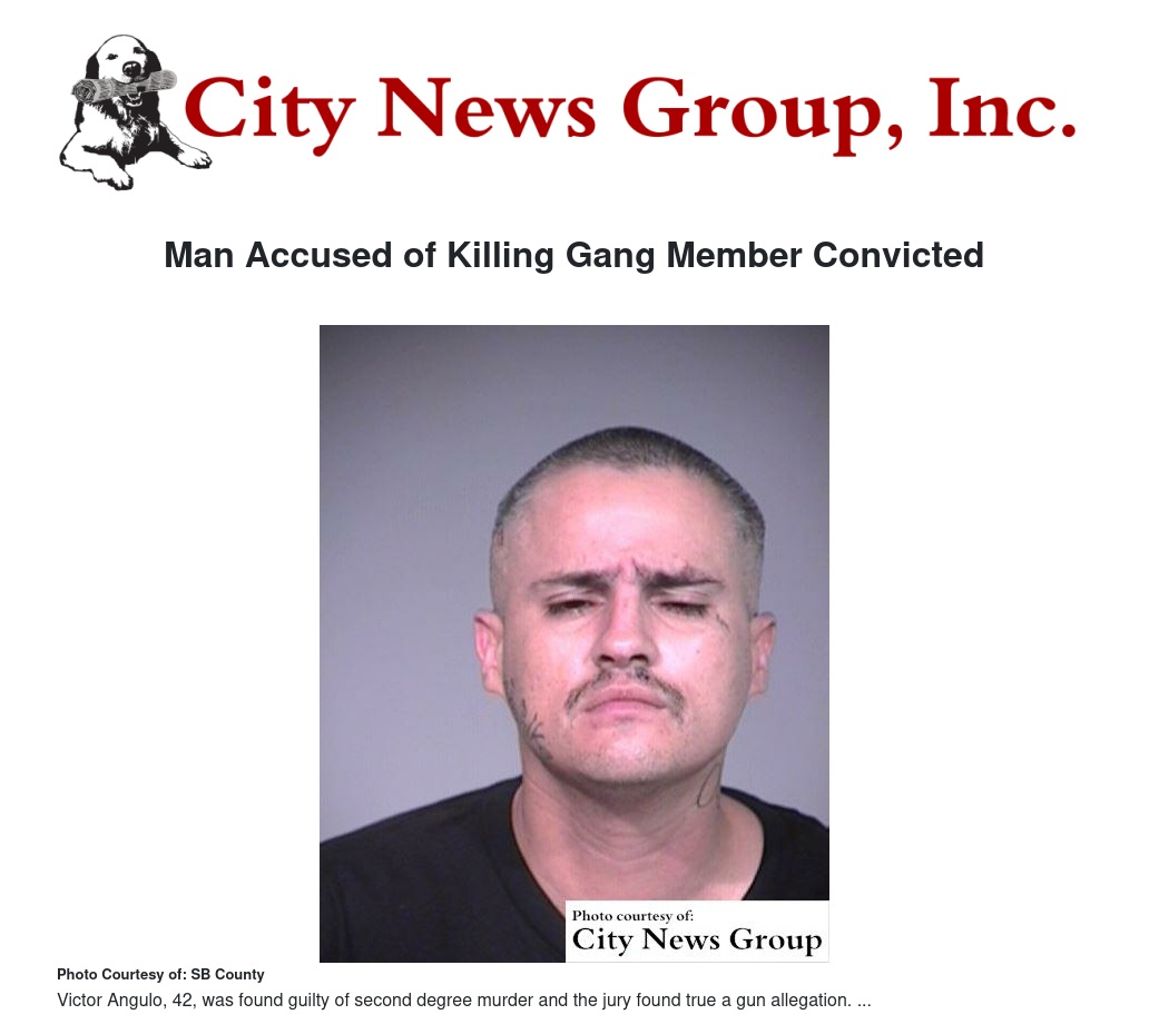 Angulo is scheduled to be sentenced Dec. 12, 2016 at the San Bernardino Justice Center in Dept. S-18. He faces 40 years to life in state prison.