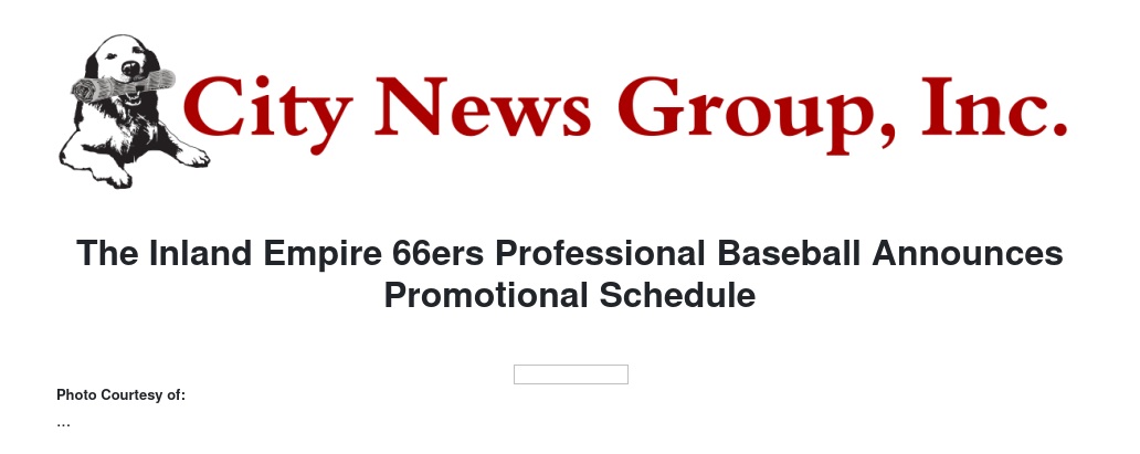 The Inland Empire 66ers Professional Baseball Announces Promotional Schedule