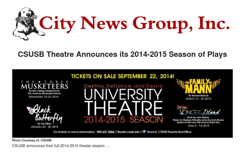 CSUSB Theatre Announces its 2014-2015 Season of Plays