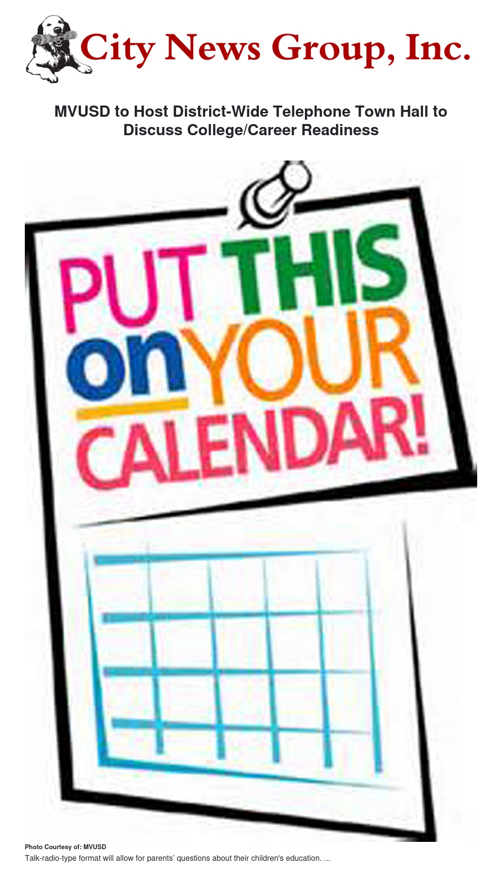 MVUSD to Host District-Wide Telephone Town Hall to Discuss College/Career Readiness