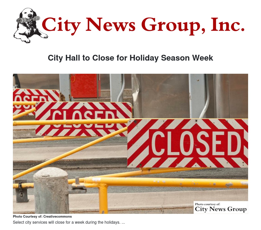 City Hall to Close for Holiday Season Week