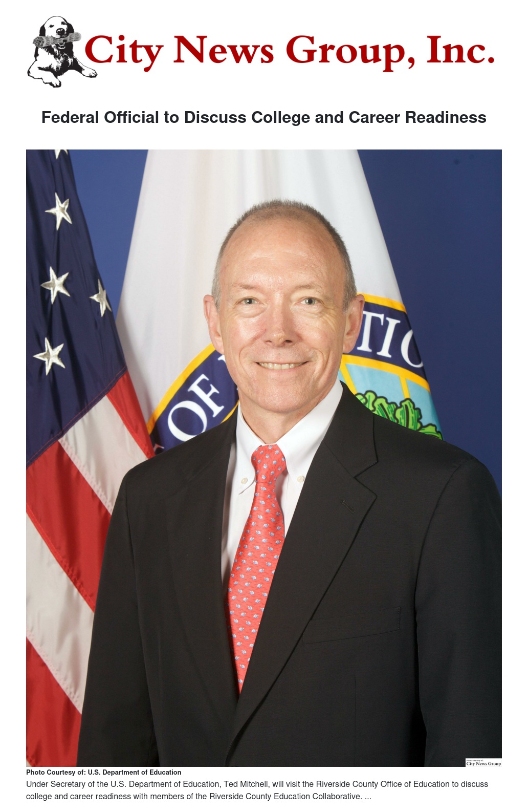 MORENO VALLEY>> Under Secretary of the U.S. Department of Education, Ted Mitchell, will visit the Riverside County Office of Education to discuss college and career readiness with members of the Riverside County Education Collaborative during his day-long visit to a multitude of educational institutions in the region on Friday, Oct. 14.