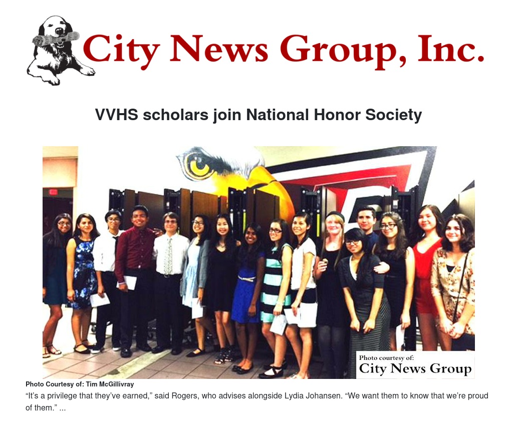 Valley View High School took time recently to recognize 44 students maintaining rolling grade-point averages of at least 3.5 and induct them into the National Honor Society (NHS).