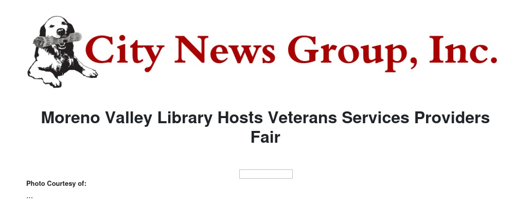 The Moreno Valley Public Library is proudly hosting a Veterans Service Providers Fair as part of the Cal Humanities Foundation Grant. The fair will be held on Saturday, Sept. 27 from 10 a.m. to 1 p.m. at the Moreno Valley Public Library, located at 25480 Alessandro Boulevard.