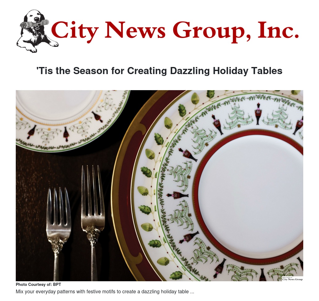 "The holidays are the best time to use the patterns you love, whether that's your everyday pattern, a family heirloom, a Christmas favorite or all of the above," says Keith Winkler, product marketing manager for dinnerware retailer Replacements, Ltd. "Take time to pull out the platter you inherited from your grandmother, or look for a way to blend in Aunt Rose's vintage teapot. It really doesn't matter whether you're planning a casual dinner or a glitzy party, using heirloom patterns is more than a great conversation starter with your guests - these pieces bring tradition and family to your table."