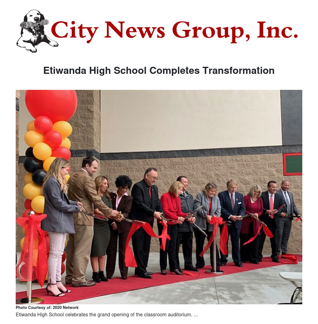 Students, teachers, District officials and dignitaries got a first-hand view of Etiwanda’s physical transformation during dedication ceremonies for the school’s new 103,193-square-foot auditorium and classroom facility – the largest single building in the Chaffey District, capable of accommodating as many as 1,5000-2,000 students at once.