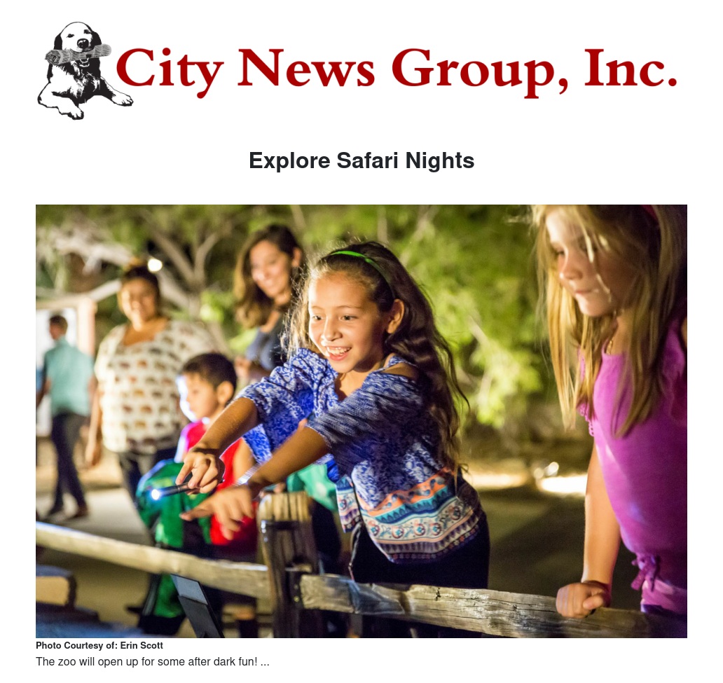 Safari Nights activities include an astronomy station, bat detecting station, scorpion walk, arts and crafts, and animal chats. Carousel rides and giraffe feedings will be available for an additional fee.