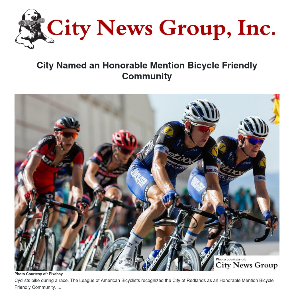 REDLANDS>> The League of American Bicyclists recognized the City of Redlands as an Honorable Mention Bicycle Friendly Community.
