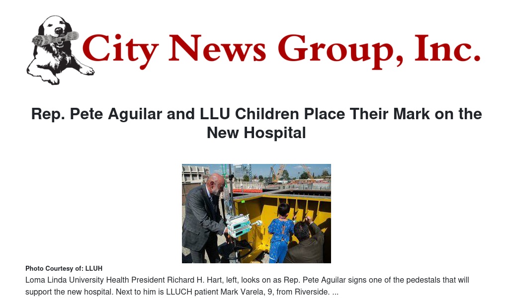 Rep. Pete Aguilar and LLU Children Place Their Mark on the New Hospital