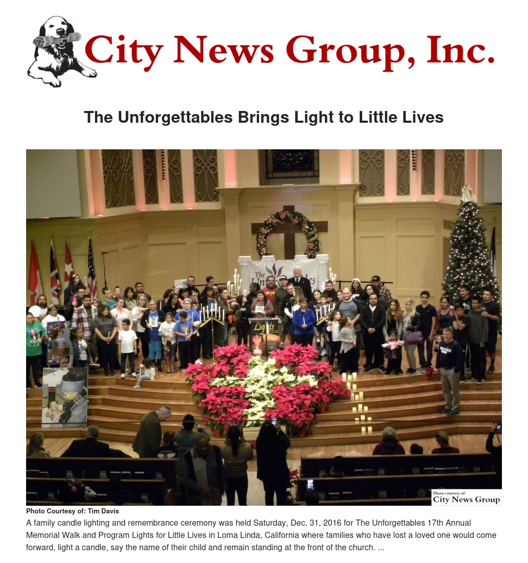 ALL>> Before ringing in the New Year, hundreds of people and families from all around the Inland Empire joined together Saturday, Dec. 31, 2016 for The Unforgettables 17th Annual Memorial Walk and program Lights for Little Lives in Loma Linda, California.