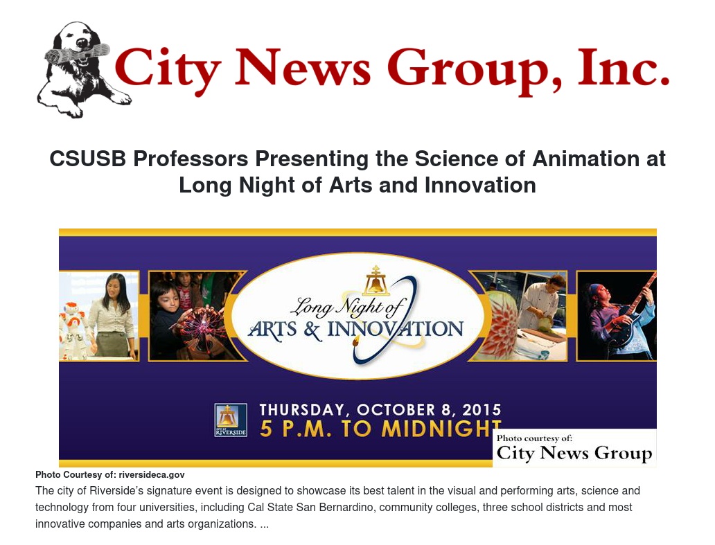 CSUSB Professors Presenting the Science of Animation at Long Night of Arts and Innovation