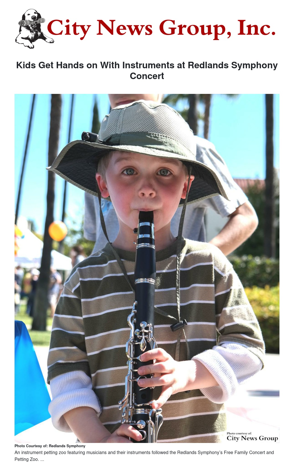 “This concert is part of the Redlands Symphony’s OrKIDstra music education program and is designed to provide an opportunity for children to enjoy live music with their family and learn a little about the instruments they’ve just heard played in the concert,” explained Paul Ideker, President & CEO of Redlands Symphony. “Providing this concert and musical experience free of charge is one of the ways the Symphony makes music available to everyone in the community and, we hope, encourages young people to have music as a part of their life.”