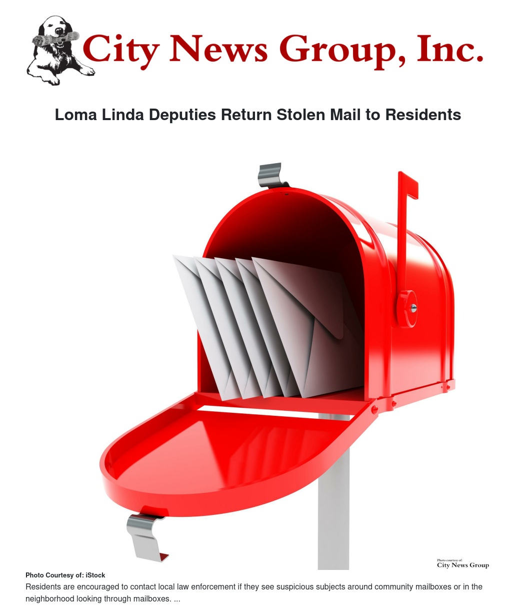 If you see suspicious subjects around your community mail boxes or in your neighborhood looking through mailboxes, you are urged to call your local law enforcement agency. Mail theft can affect you financially and have a lasting negative effect on your credit.