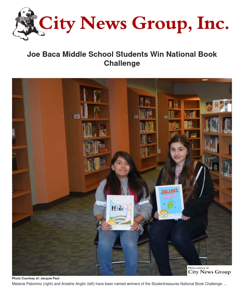 COLTON >> Two Joe Baca Middle School students have been named winners in a national student book contest.