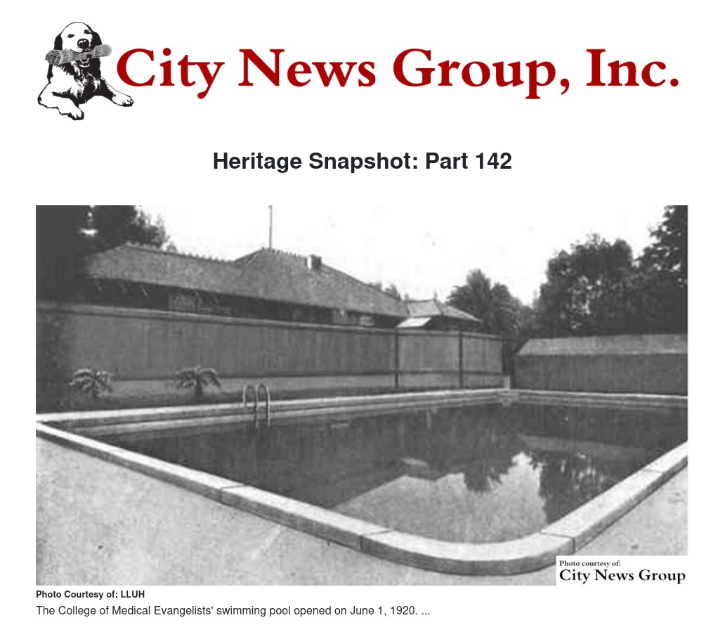 In 1927 G. H. Curtis, Business Manager of the Loma Linda Sanitarium and Hospital, insisted that the Board vote to move the swimming pool to another locality in Loma Linda. He stated that on account of its close proximity to the hospital building, the noise from the pool area was detrimental to “the best interests of the hospital.”