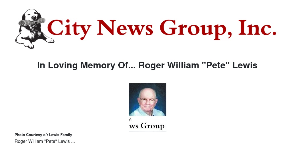 Roger "Pete" William Lewis, beloved husband, father, grandfather, great grandfather and uncle, died peacefully Saturday, June 6, 2015 in Ventura, CA.