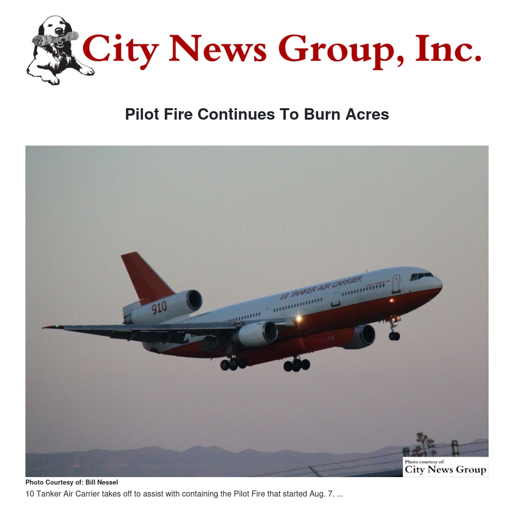 While drones have not been seen over the Pilot Fire, fire managers said in a press release they would like to remind the public that hobby drones, or unmanned aircraft systems, pose a major safety threat to firefighting pilots and firefighters. When a hobby drone is flown into a fire area, incident commanders have no choice but to suspend air operations and ground aircraft until the drone is removed from the area.