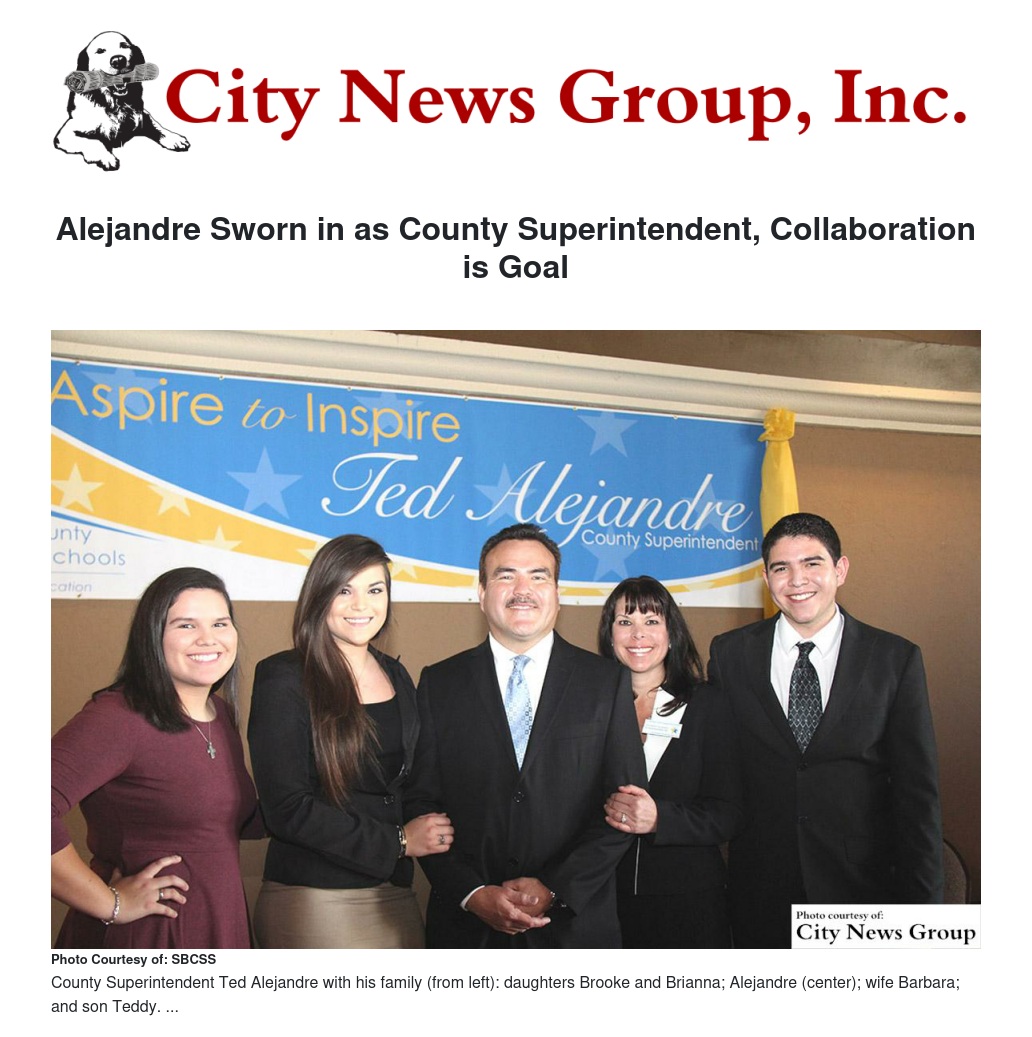Ted Alejandre on Monday, Jan. 5 became San Bernardino's 34th superintendent during a swearing-in ceremony held that afternoon at the National Orange Show. He is also the first Hispanic person to serve this role.