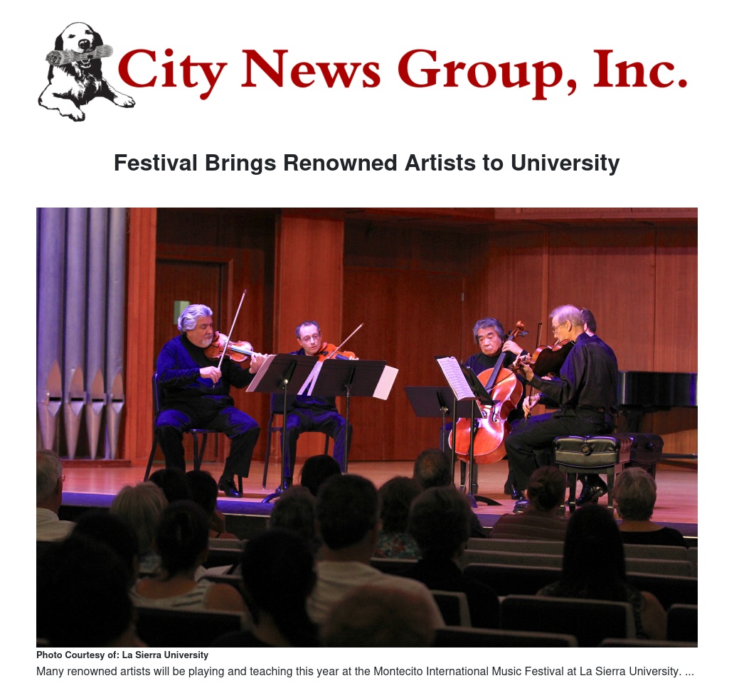Next month, La Sierra University will host the Montecito International Music Festival for another season of performances by acclaimed classical musicians and gifted students from around the world.