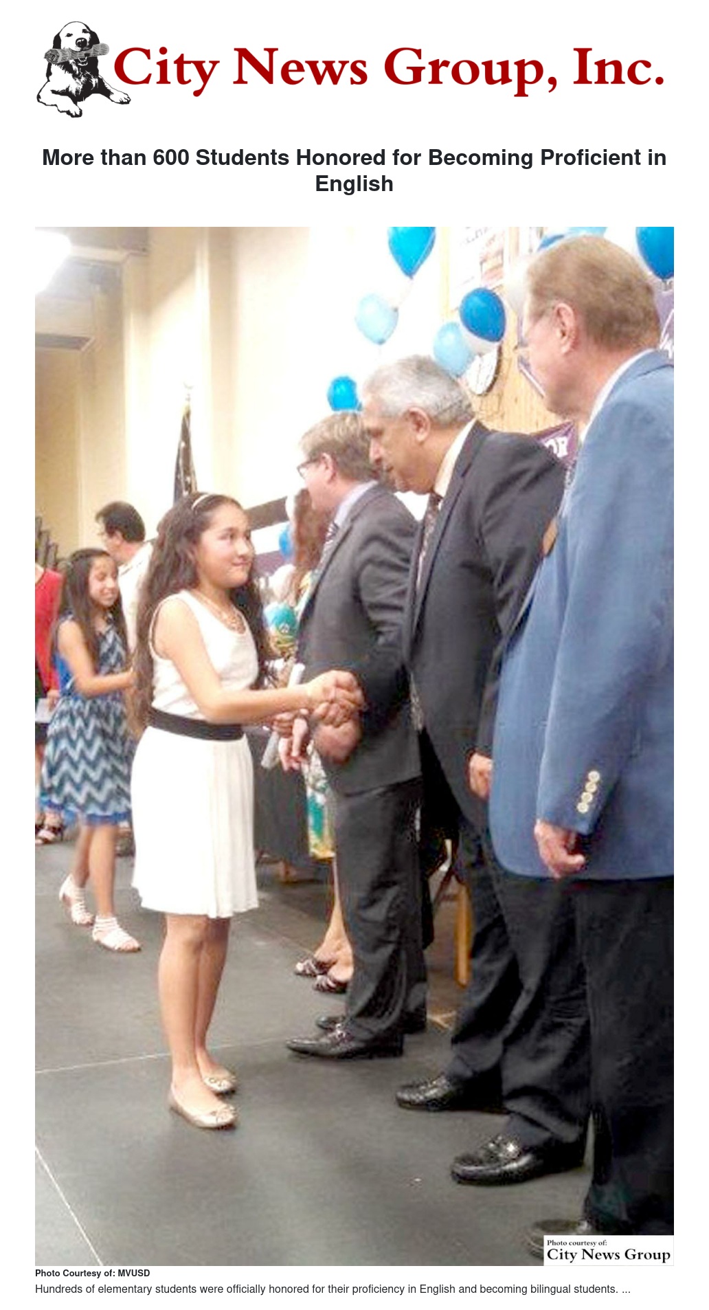 The gym at Vista del Lago was filled recently with proud parents and family members as 337 elementary students were officially reclassified from English learners to English proficient and another 294 students were also recently honored.