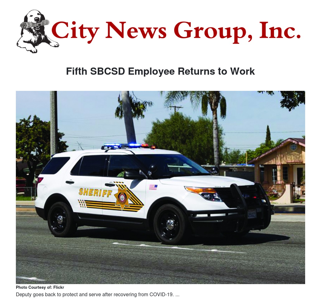 The deputy who is assigned to patrol has returned to work after recovering from COVID-19. The department anticipates additional employees affected by the virus will return to work in the next few weeks.