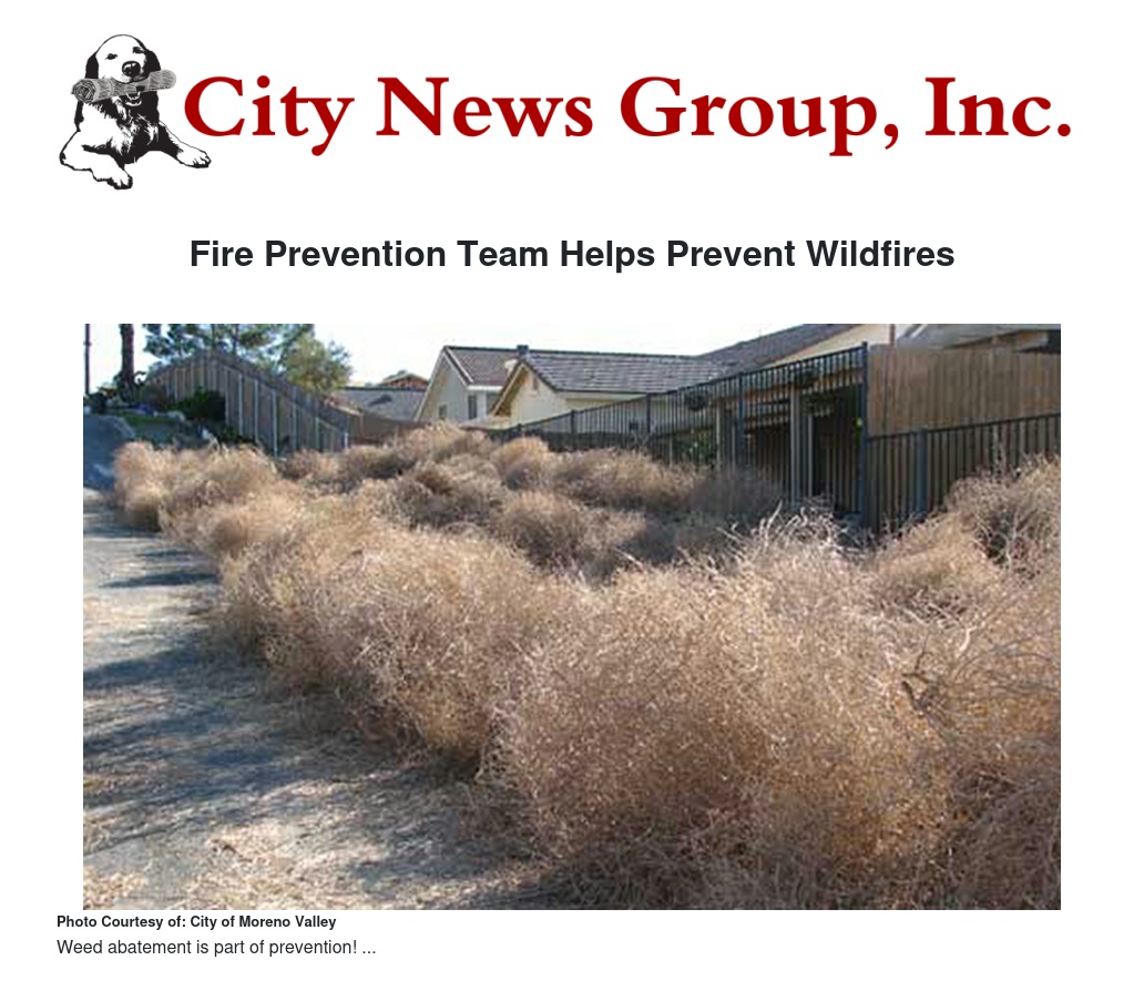 For more information, please visit Moreno Valley's Fire Prevention web page.
