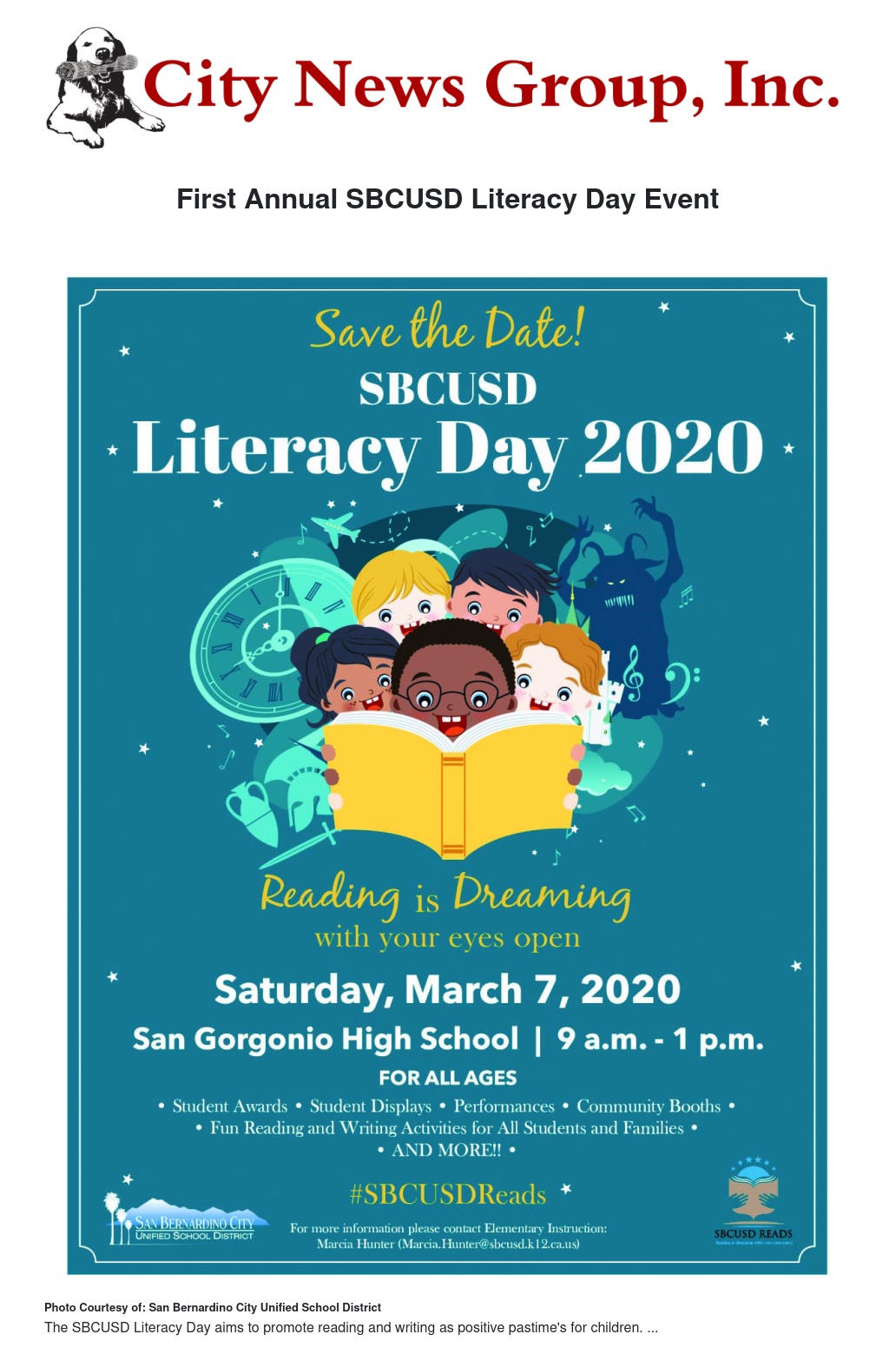 San Bernardino City Unified School District (SBCUSD) has designated this the Year of Literacy. The highlight of the year-long focus is SBCUSD Literacy Day 2020.
