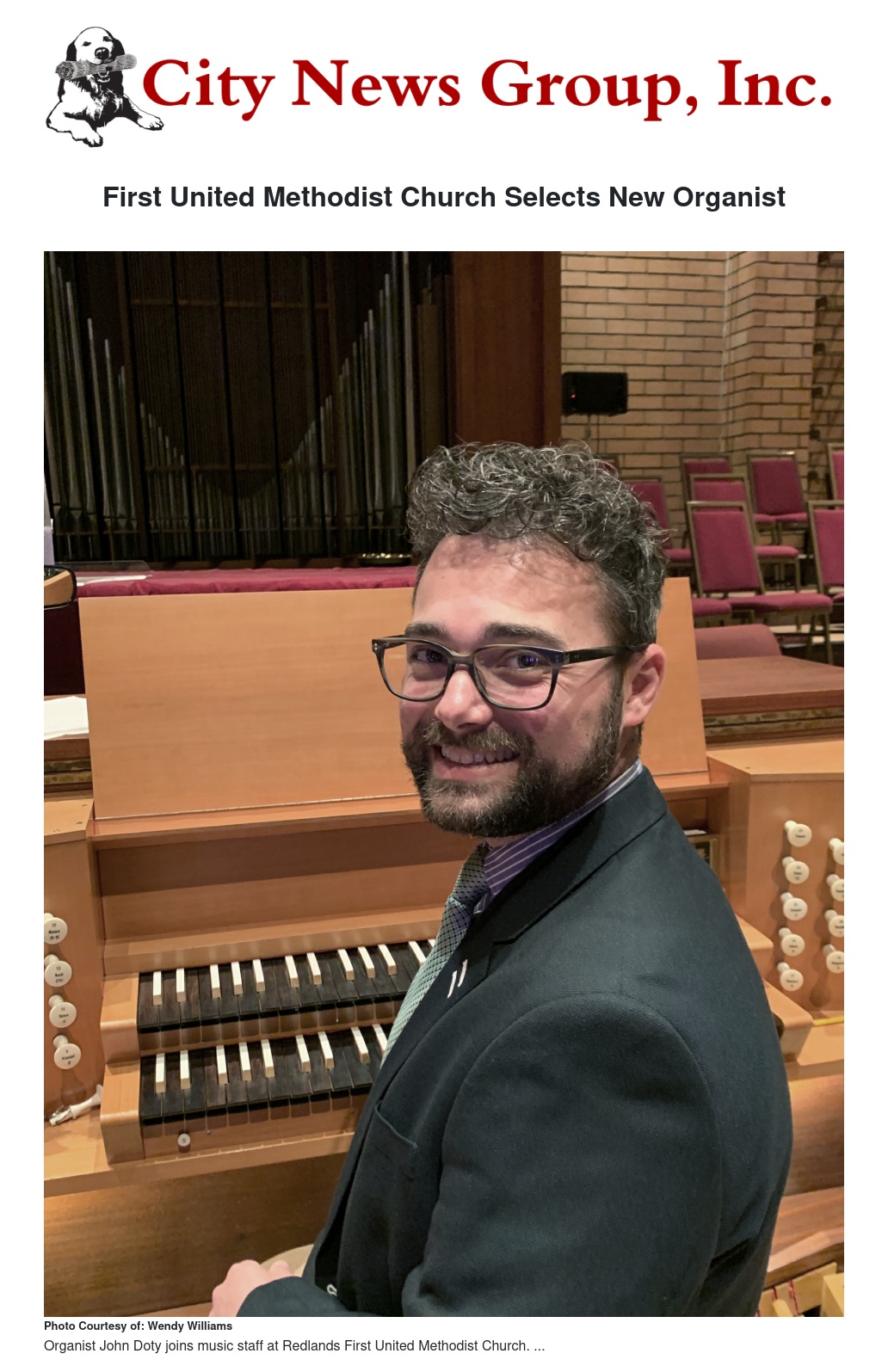 In March, organist John Doty joined the music staff at the First United Methodist Church located at 1 E. Olive Avenue in Redlands.