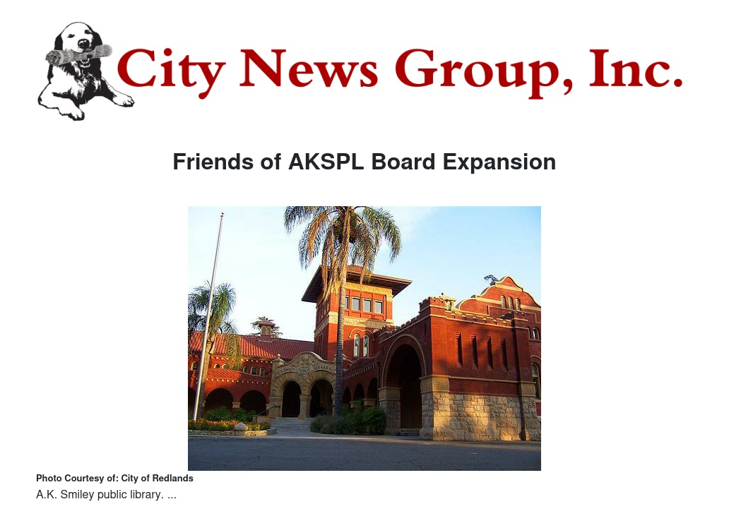 The Friends of A.K. Smiley Public Library Board of Directors are looking for people who love books, libraries and want to give back to their community through becoming a member of the board.