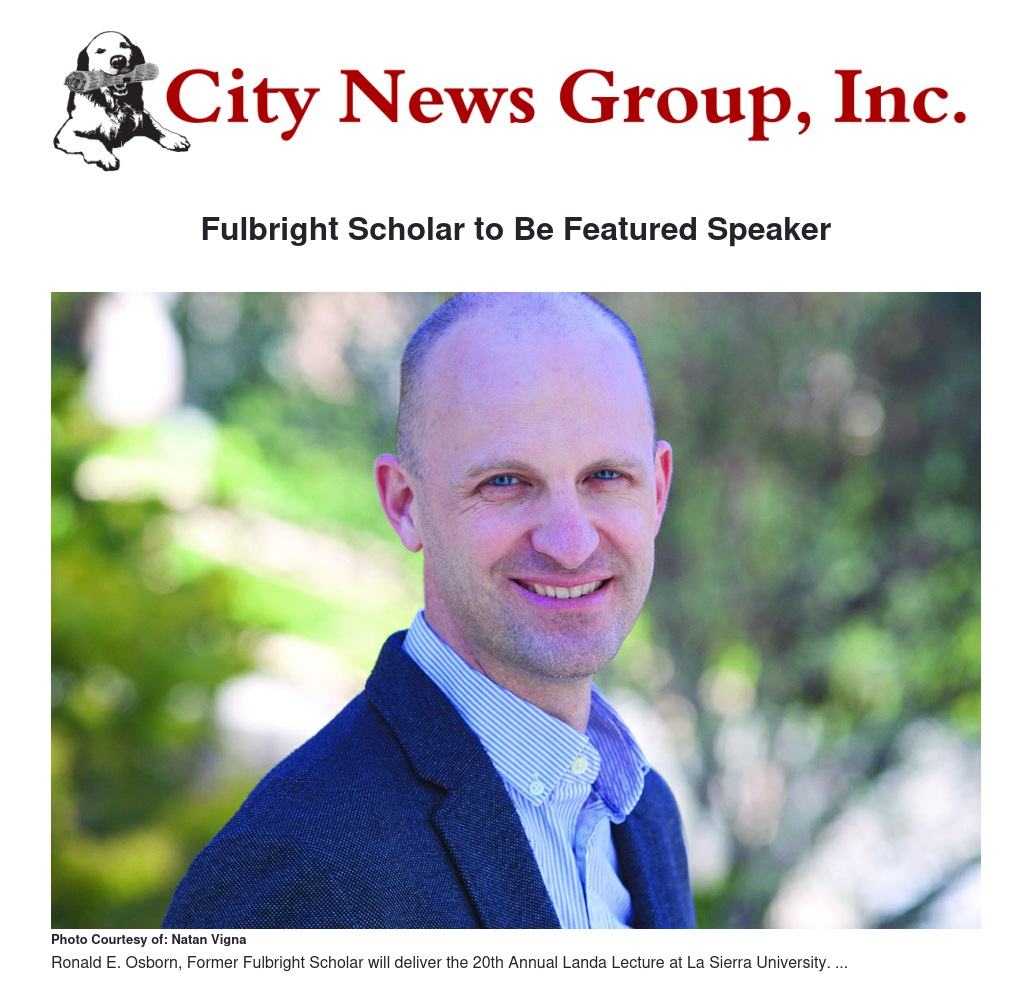 The 20th Annual Paul J. Landa Memorial Lecture on Faith Learning will be held on Thursday, April 25 and will feature Ronald Osborn, a visiting professor with La Sierra University’s H.M.S. Richards Divinity School who is also a former postdoctoral fellow at Wellesley College and 2015 Fulbright Scholar in Burma/Myanmar. He will give a talk titled "Violence in the Book of Joshua: A Canaanite Reading” at 6:30 p.m. at Hole Memorial Auditorium. Admission is free.