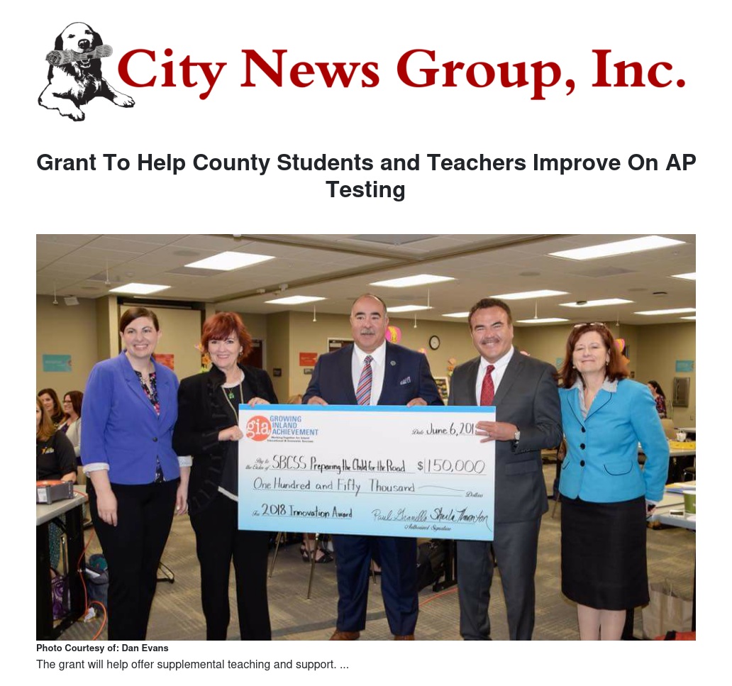 The purpose of the grant will be to offer supplemental teaching and support for Advanced Placement (AP) students countywide, joining Riverside County students and teachers who have participated in the program during the past two academic years.