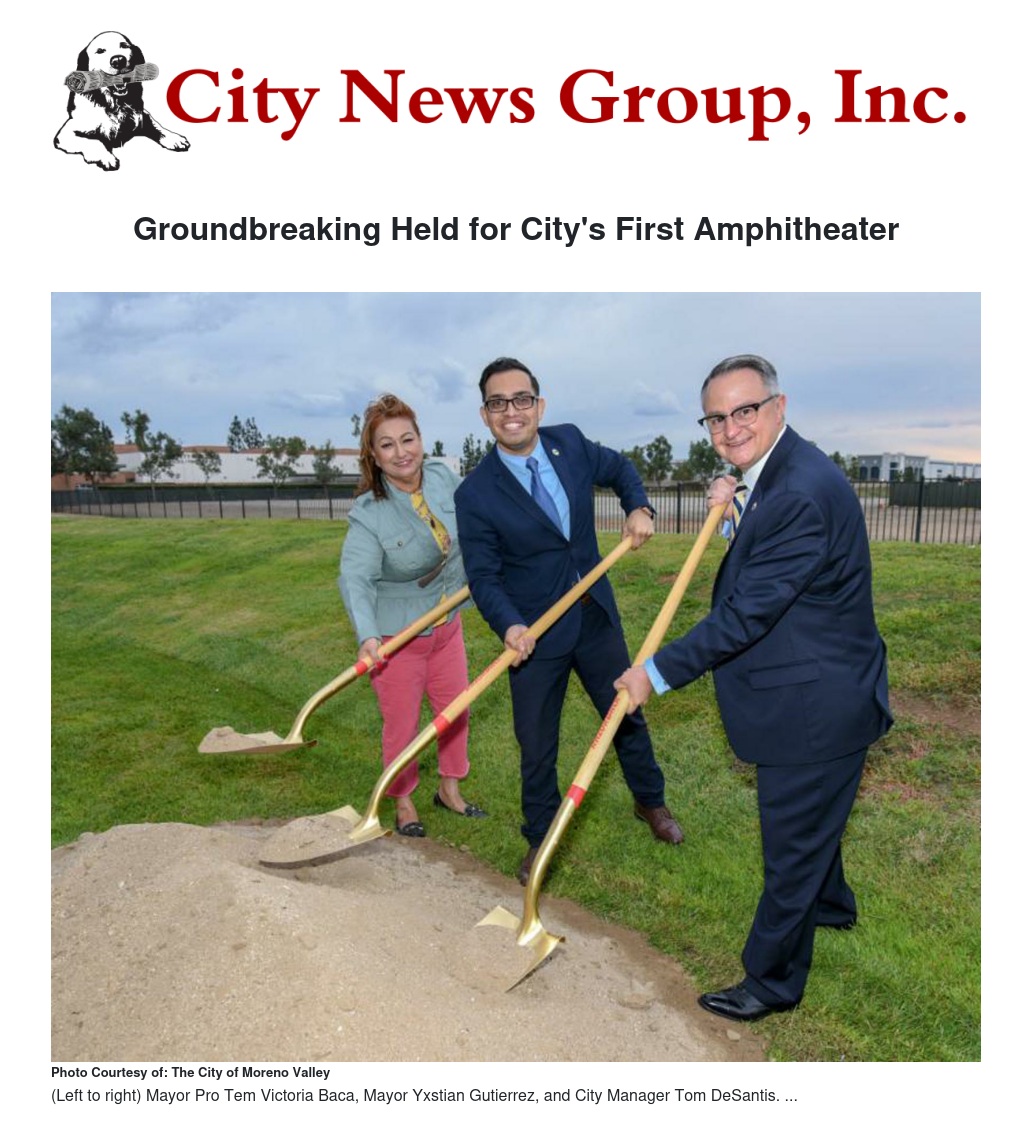 The City of Moreno Valley held a groundbreaking ceremony on October 3 to celebrate the beginning of construction on Moreno Valley’s first outdoor amphitheater and the continued expansion of arts and culture across the City.