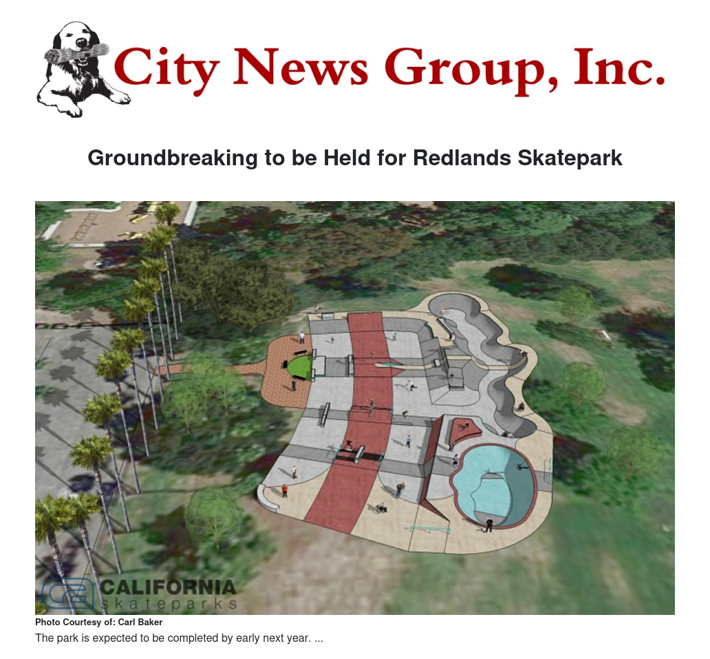 The City of Redlands will break ground on the new Redlands Skatepark at a ceremony at 5:30 p.m. Monday, July 9, at Sylvan Park.