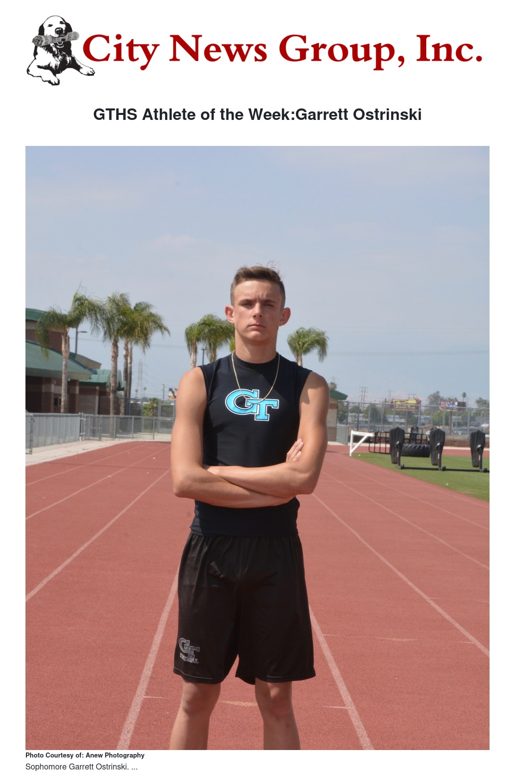 This week’s GTHS athlete of the week goes to Garrett Ostrinski. Garrett plays for both the varsity football and high jump varsity track team. He is at the young age of 16 years old, in the 10th grade and maintains a successful and impressive 3.8 gpa.