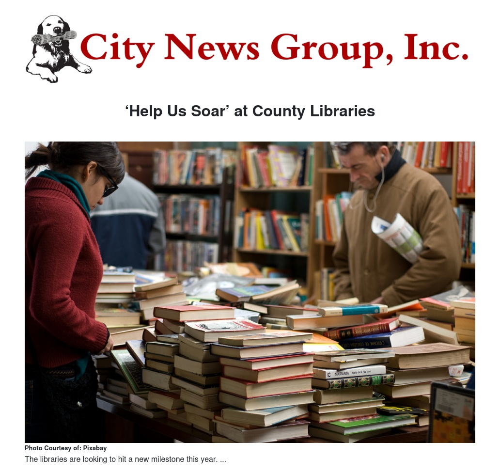 The San Bernardino County Library system has increased circulation to over five and a half million items in the previous years, and now wants to meet a new milestone of circulating six million items by June 30. The Library’s 650,000 card holders are encouraged to ‘Help Us Soar’ in the following ways: