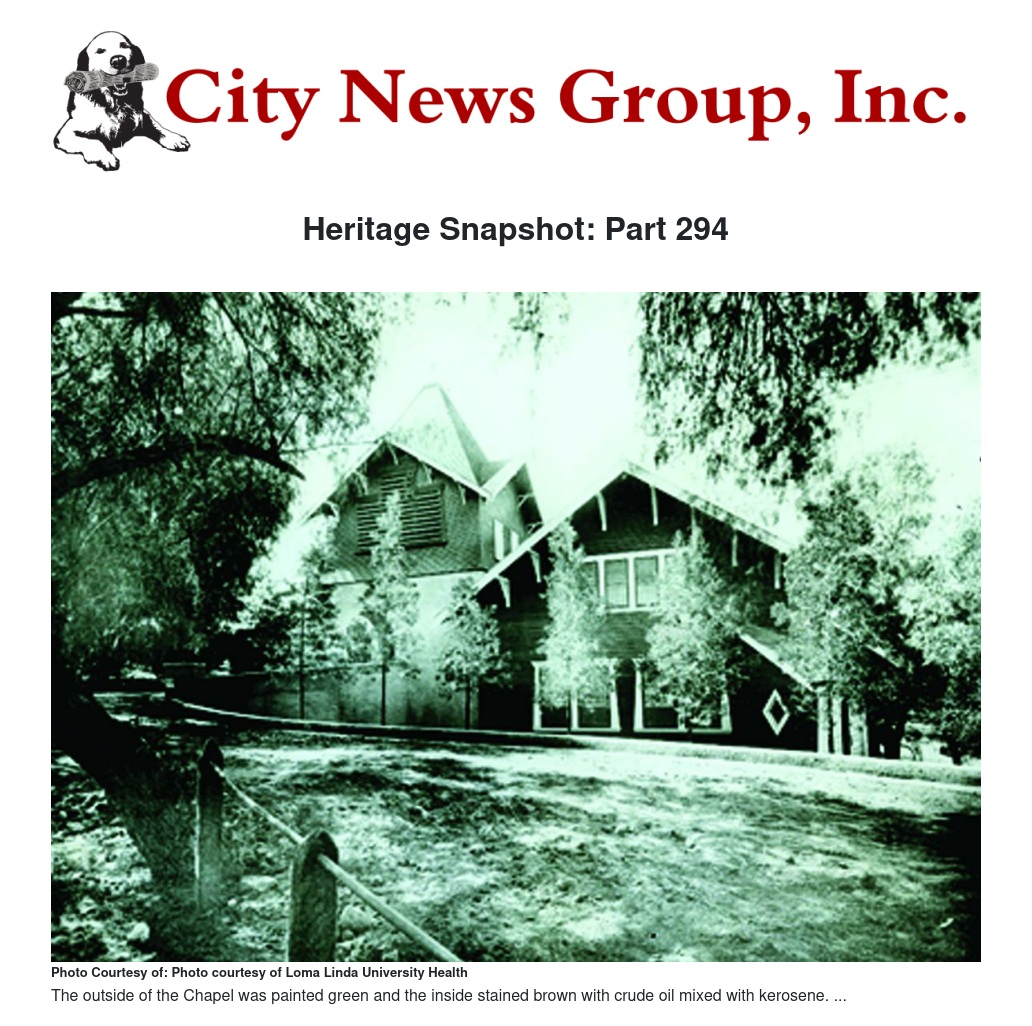On April 14, 1906, Ellen G. White, co-founder of the Loma Linda Sanitarium, spoke to the newly organized church on “Lessons from the First Chapter of Second Peter.” The next day she spoke at the dedication of the Sanitarium. Altogether, she spoke about 12 times in Loma Linda, the last time on November 6, 1912. Clarence Harlow, a long-time resident of Loma Linda, remembered as a child seeing Mrs. White and John Burden walking together on the hill. His recollection provided insight into the dynamics and respect early personnel maintained for the organization’s co-founders.