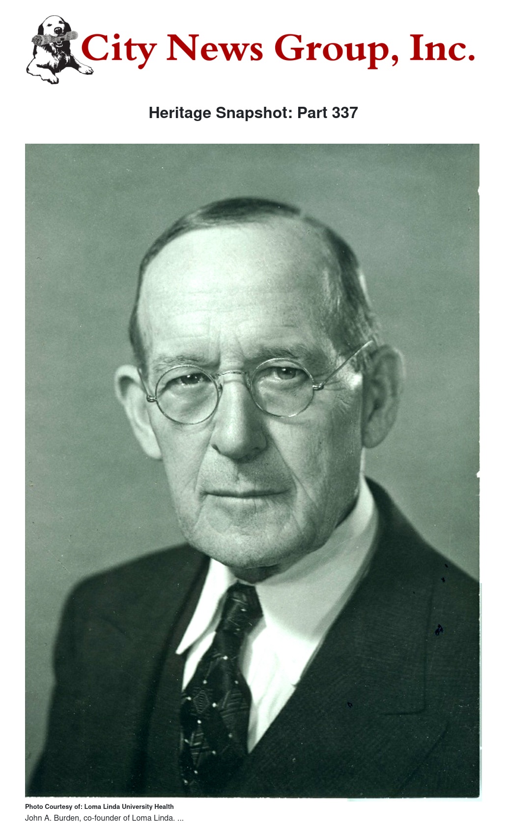 In John Burden’s devotion to the advancement of Seventh-day Adventist medical missionary endeavor as advocated by the counsel of Ellen G. White, he pushed on where others often hesitated. If he felt called by God to accomplish a certain task, he moved steadily forward in spite of all obstacles. Without his indomitable faith, creativity, and perseverance Loma Linda University and Medical Center would not have come into existence. These institutions are enduring testimonials to the faithfulness and commitment of this exemplary Christian gentleman.