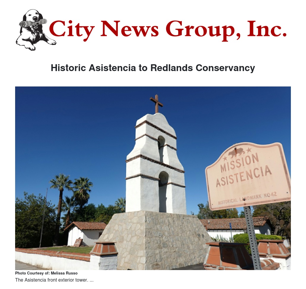 "The museum's transfer of the Asistencia to Redlands Conservancy is the culmination of months of consultation with national experts, and thoughtful consideration of the best practices and examples of innovation in historic site management," said Melissa Russo, San Bernardino County Museum Director. "We believe this new ownership is a big win for San Bernardino County and the community of Redlands. In fact, the concept of conveying the responsibility of professional stewardship to a respected, local organization with a strong preservation track record, was lauded as an exemplary item in our recent 10-year re-accreditation."