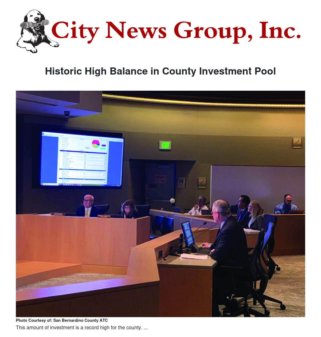 San Bernardino County Auditor-Controller/Treasurer/Tax Collector (ATC) Ensen Mason today announced that the County Investment Pool closed out an historic month of April with a new all-time high record cashbook balance of $9,034,354,780.28. This marks the County’s first ever closing balance above $9 billion, and it comes only three weeks after the pool closed for the first time ever above $8 billion on April 7, 2020. As of April 30, the County Pool’s estimated gain in market value was $144,795,477 and the yield-to-maturity was 1.54%.