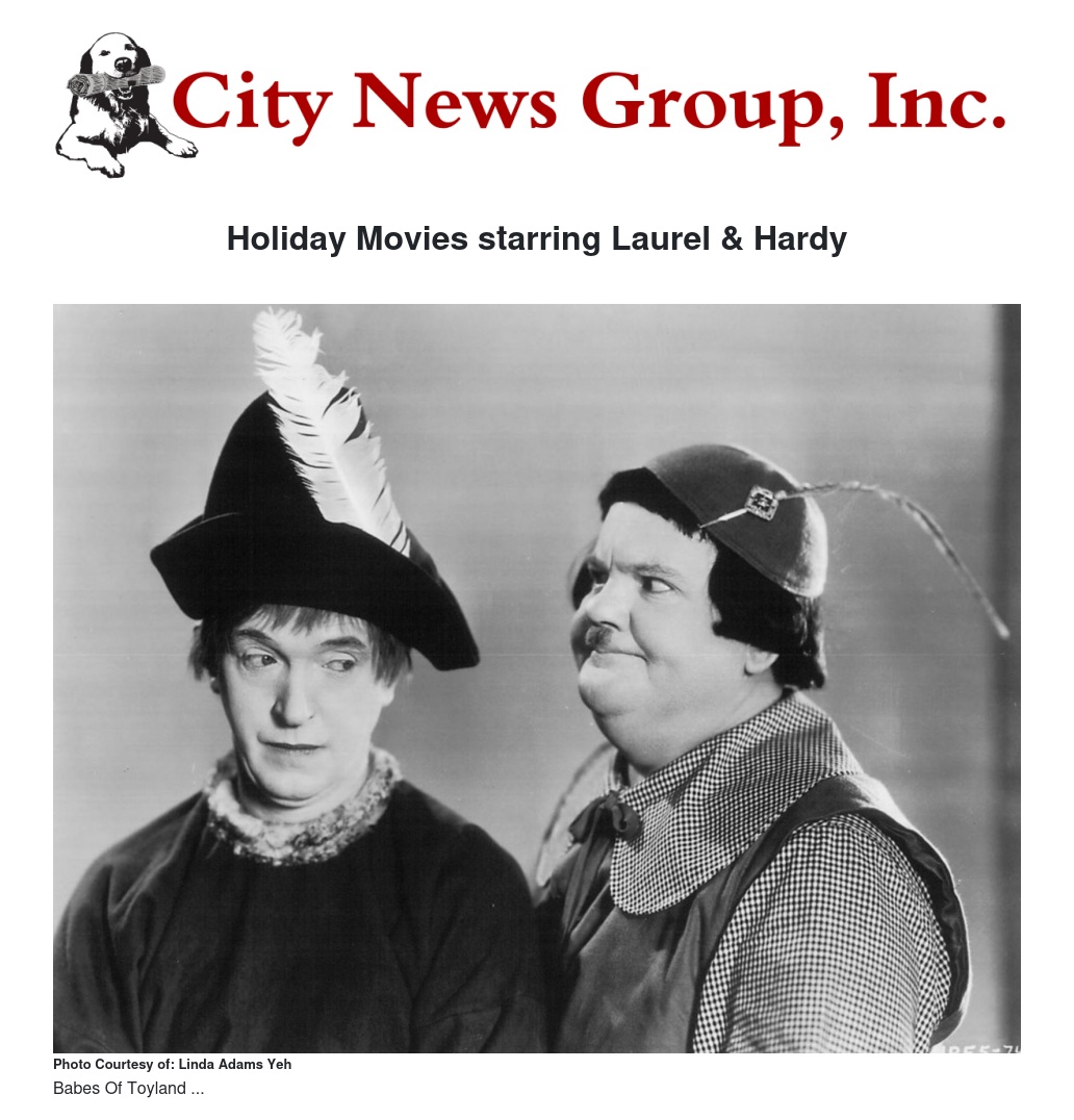 Babes in Toyland is a Laurel and Hardy musical film that was released on November 30, 1934. It has become a Christmas time tradition. Stannie Dum and Ollie Dee work at the toy factory and run into the evil Barnaby. Tom-Tom, Bo Peep and Mother Goose are some of the other characters “The Boys” run into.
