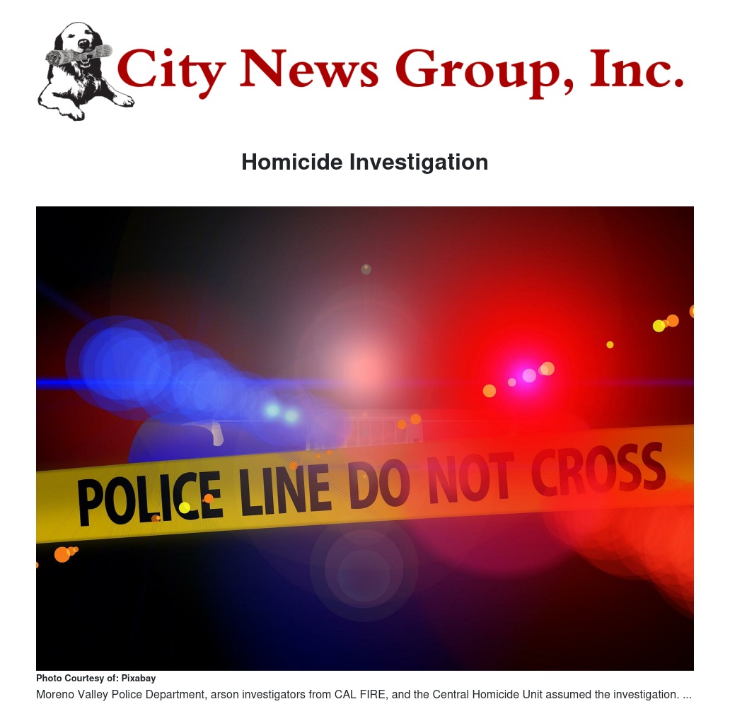 On April 3, 2018, at about 11:50 p.m., officers assigned to the Moreno Valley Police Department and firefighters from the CAL FIRE/Riverside County Fire, Moreno Valley Fire Services were dispatched to the 14000 block of Cloverfield Road to investigate a report of a structure fire. The victim, Amy Morrison, a 45-year-old female, who resided in the home, was found unresponsive. Morrison was transported to a local hospital and was pronounced deceased.   On 04/04/2018, due to suspicious circumstances, detectives from the Moreno Valley Police Department, arson investigators from CAL FIRE, and the Central Homicide Unit assumed the investigation. A 15-year-old female, who resides within the home, was arrested for murder and arson and booked into juvenile hall. Her name is being withheld due to her age. The investigation is currently on-going and no further information will be released at this time. If anyone has information regarding this investigation, they are encouraged to call Detective Mullins with the Central Homicide Unit at 951-955-2777 or Detective Leon with the Moreno Valley Police Department at 951-486-6700.