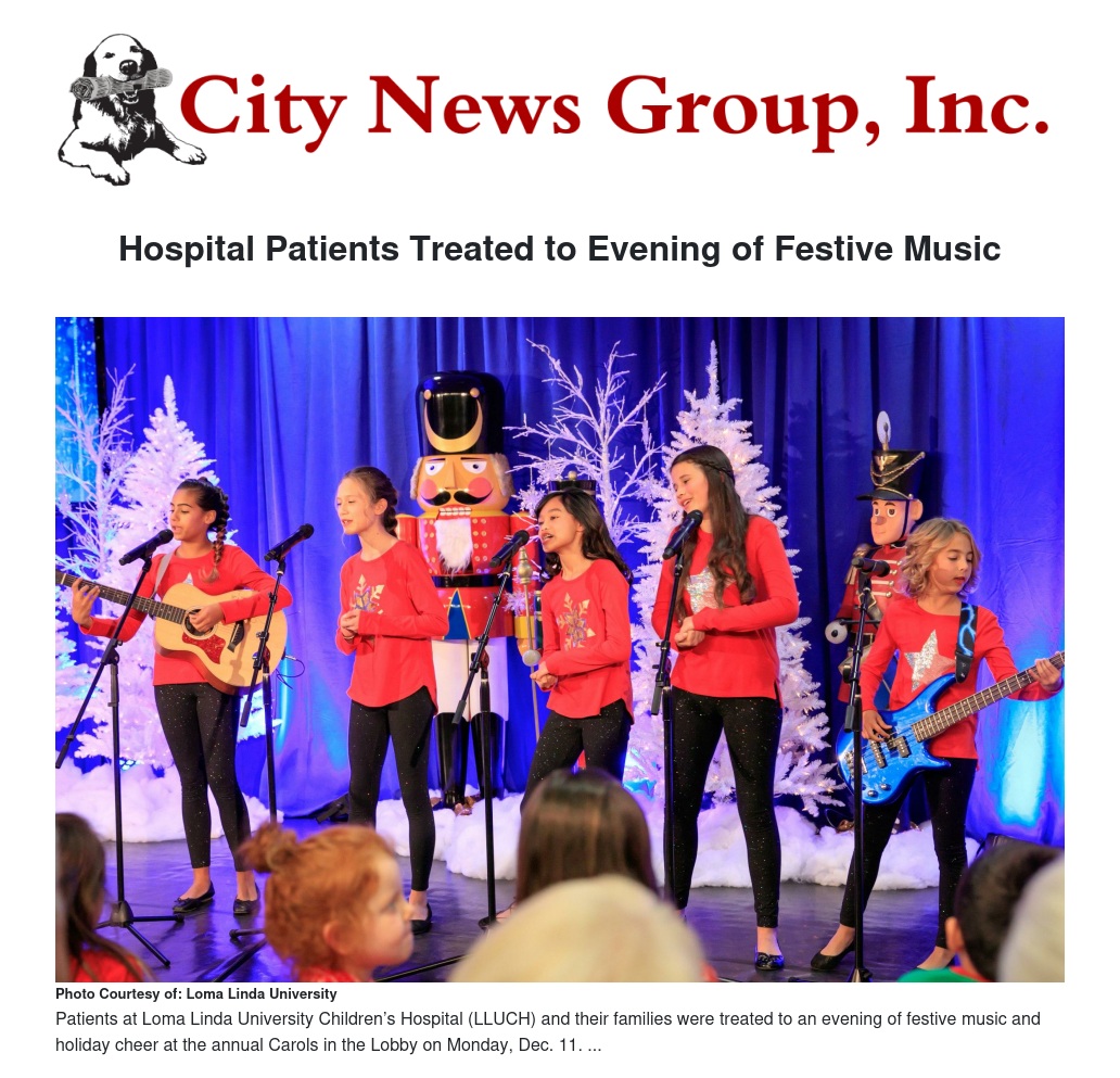 LOMA LINDA -- Patients at Loma Linda University Children’s Hospital (LLUCH) and their families were treated to an evening of festive music and holiday cheer at the annual Carols in the Lobby on Monday, Dec. 11.