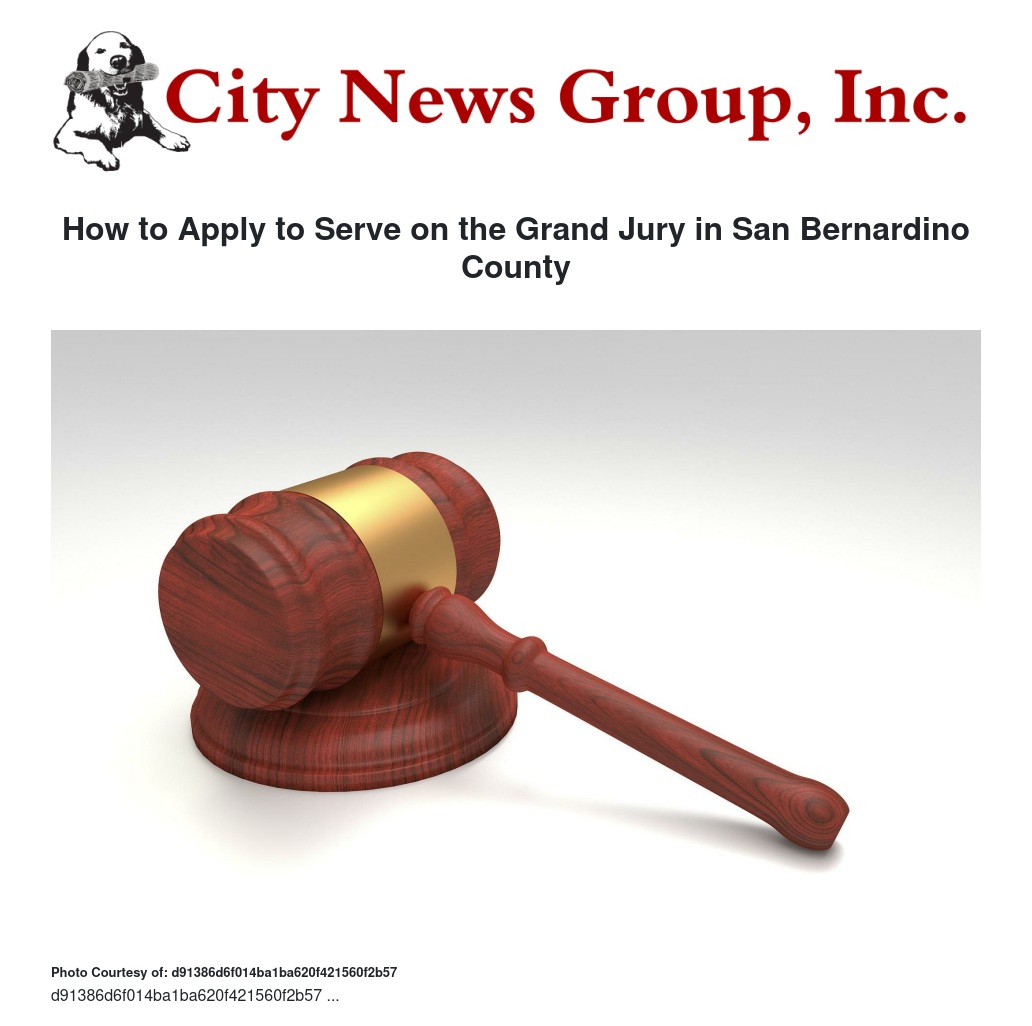 The application process for the 2018-19 San Bernardino County Civil Grand Jury is being accepted on April 6, 2018. Applicants that are chosen for the grand jury will serve for the fiscal year beginning July 1, 2018, and end on June 30, 2019. The civil grand jury is charged by the California Penal Code to investigate all aspects of county governance, including cities and special districts and also potentially hear information on certain criminal investigations. All communications to the grand jury are confidential and every signed citizen complaint is responded to after it is investigated. A grand juror’s service averages between three to five full working days per week, which is compensated at $25 per day, plus meals and appropriate mileage. The grand jury meeting place is normally in the city of San Bernardino. In order to be selected, a person must be at least 18 years of age, a United States citizen, and a resident of California and San Bernardino County for at least one year before the appointment. Ancillary requirements include that a person have sufficient knowledge of the English language, possession of natural faculties, ordinary intelligence, sound judgement and good character. Elected officials are not eligible per law. In order to get an application, you can download a copy at cms.sbcounty.gov/grandjury/BecomingaGrandJuror.aspx. Applications can be obtained at 172 W. Third St., second floor, San Bernardino, or by calling 909-387-9120.