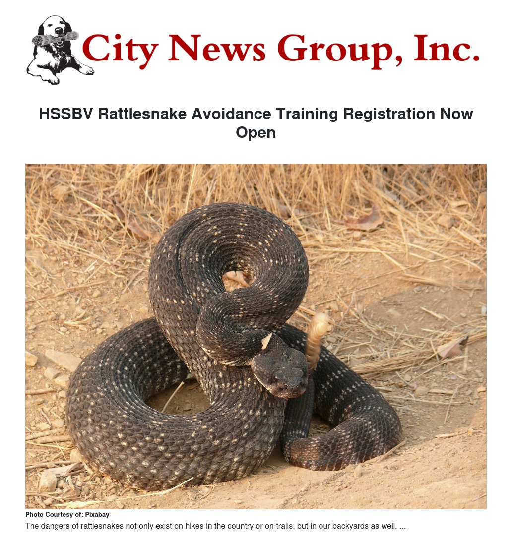 HSSBV Rattlesnake Avoidance Training Registration Now Open