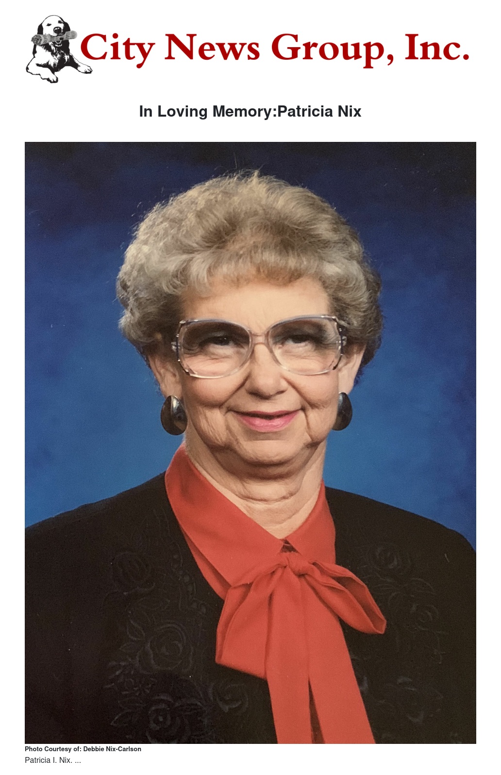 After a long battle with Alzheimer’s, Grand Terrace community leader and volunteer Patricia (Pat) Nix peacefully passed away in the same house in which she had lived for 51 years.