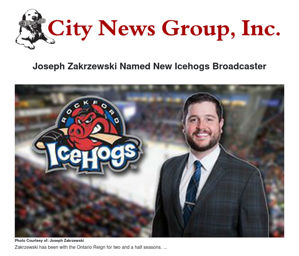 The Rockford IceHogs, proud member of the American Hockey League, today announced the hiring of Joseph Zakrzewski as the team’s Broadcaster/Communications Coordinator.