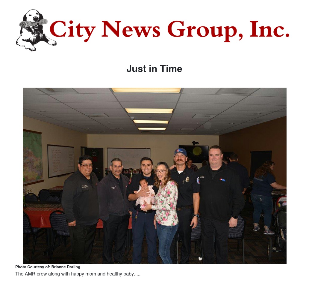 “With so much negative that comes along with our jobs on a daily basis its nice to be a part of something so positive that we will remember forever”, Will Rodriguez said. Nearly two months later Ella (named after her great Aunt which she would have shared a birthday with had she come on time) is happy and healthy. The Villalobos family will have quite the story to share with her when she gets a bit older. The AMR crew that delivered baby Ella is happy to share that same story as well.