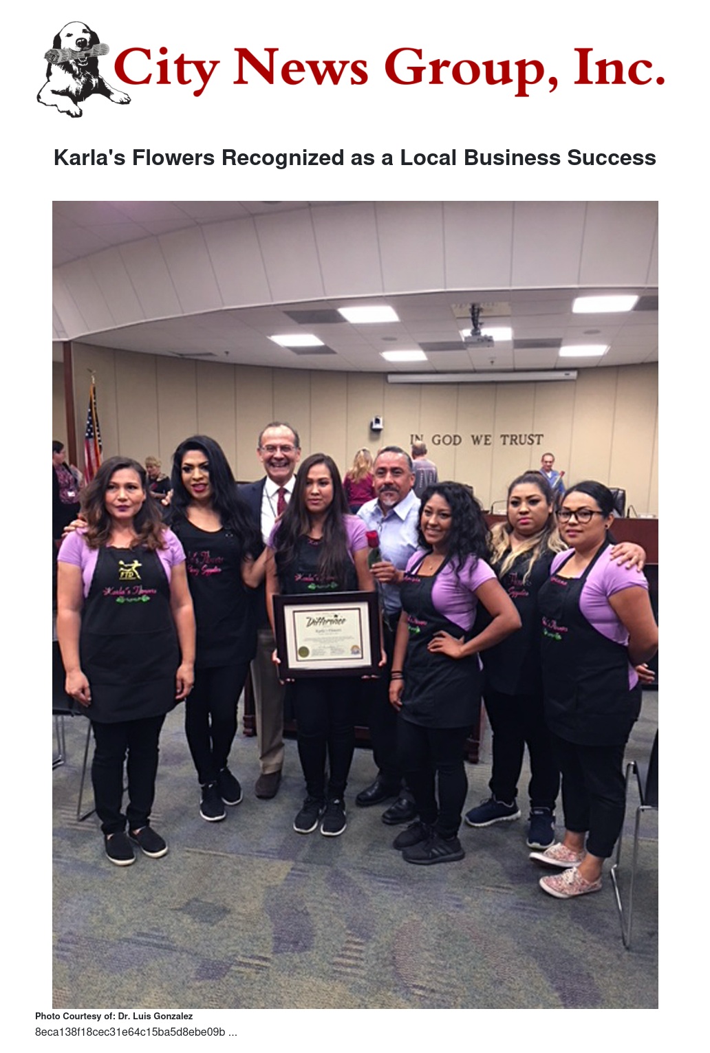 At the recent Colton City Council meeting, Council Member Dr. G (Dr. Luis S Gonzalez) presented Karla’s Flowers with a “business focus” recognition award for its success in the City of Colton. This family establishment is owned by Karla Ramirez, and is truly one of our amazing success stories.