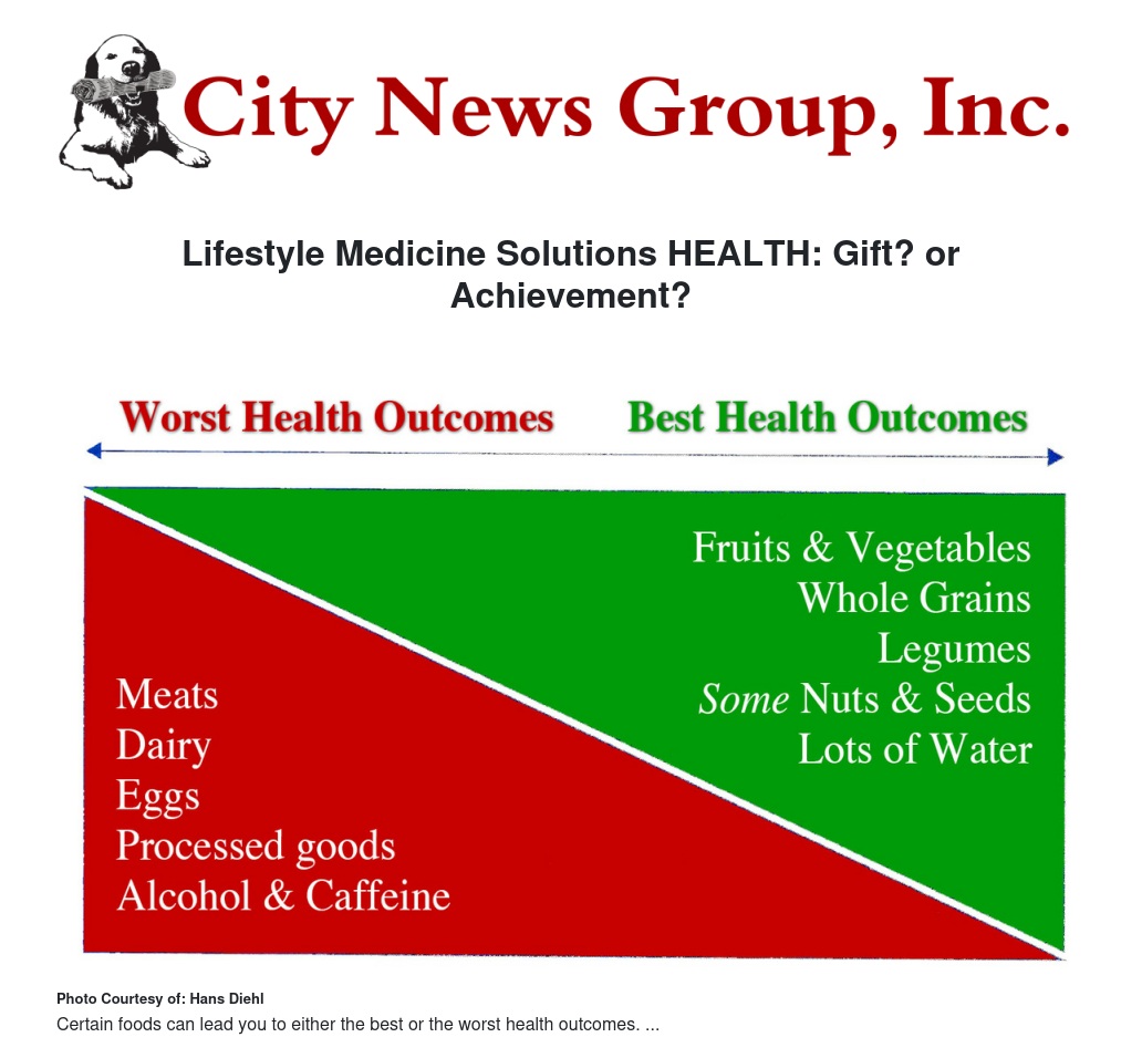 Through this weekly health column we want to empower you to make some lifestyle changes to prevent and even reverse many of today’s killer diseases which are largely lifestyle related: how we eat and drink, whether we smoke and exercise, and how we handle the stresses of life. We want to help you discover not only a better life, but the best life! And we want to help you make some of these better choices because we know now that life and health are mostly matters of choice and not merely matters of chance.